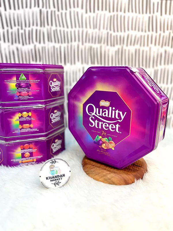 شکلات کوالیتی استریت جعبه فلزی نستله، حاوی 12 مدل مختلف شکلات و تافی های بسیار خوشمزه و فوق العاده که از هر مدل چند عدد در این جعبه فلزی زیبا وجود دارد، می باشد.