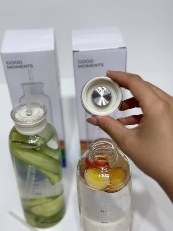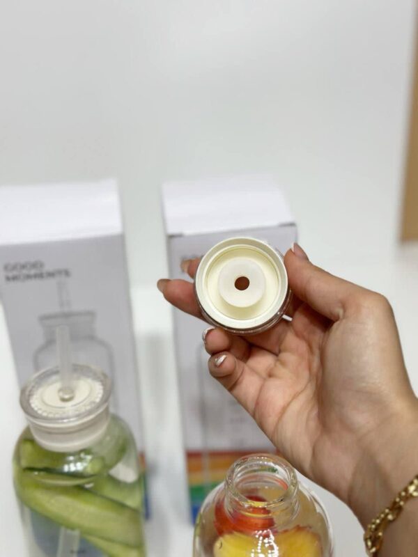 بطری دتاکس پیرکس با دو درب بطری دتاکس پیرکس با دو درب حجم ۷۰۰ میل ارتفاع ۲۳ سانت قطر کف ۷.۵ سانت قطر دهانه ۳.۵ سانت جنس پیرکس دارای دو درب درب بدون نی، درب با نی درب بدون نی هیچ نشتی ندارد دور درب واشر دارد درب پیچی اندازه نی پلاستیکی ۲۷ سانتی متر