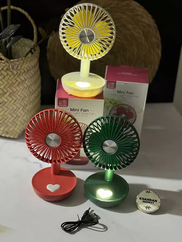 مینی پنکه رومیزی شارژی و فانتزی چراغ دار مینی پنکه رومیزی شارژی و فانتزی چراغ دار موارد پلاستیک نشکن چراغدار،مناسب چراغ خواب سه رنگ( سفید،سبز،قرمز) وارداتی چین ارتفاع 20 دارای کابل usb قدرت 1.5 وات ولتاژ باطری: 4.2 ولت ولتاژ شارژ :5 ولت باطری: 300 میلی آمپر دارای سه حالت(خاموش،چراغ،پنکه)