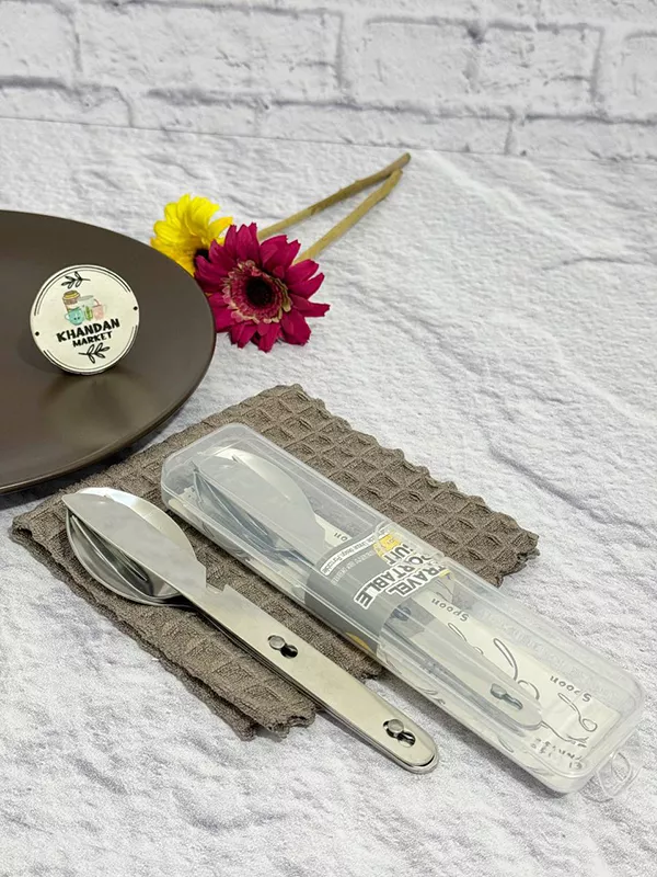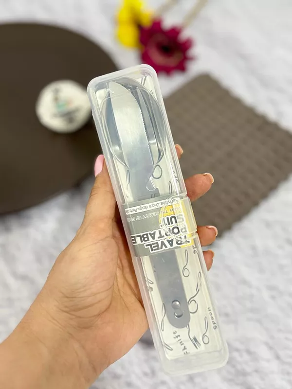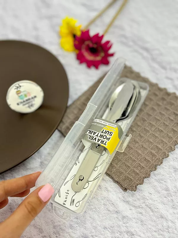 ست قاشق چنگال و چاقو چفتی مسافرتی با جعبه محافظ ست قاشق چنگال و چاقو جنس استیل تک مدل قابلیت چفت شدن طول 17 سانت