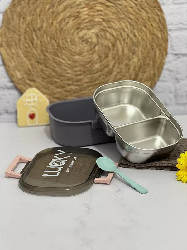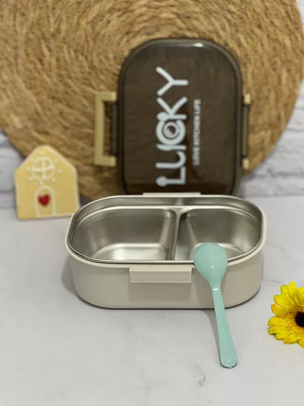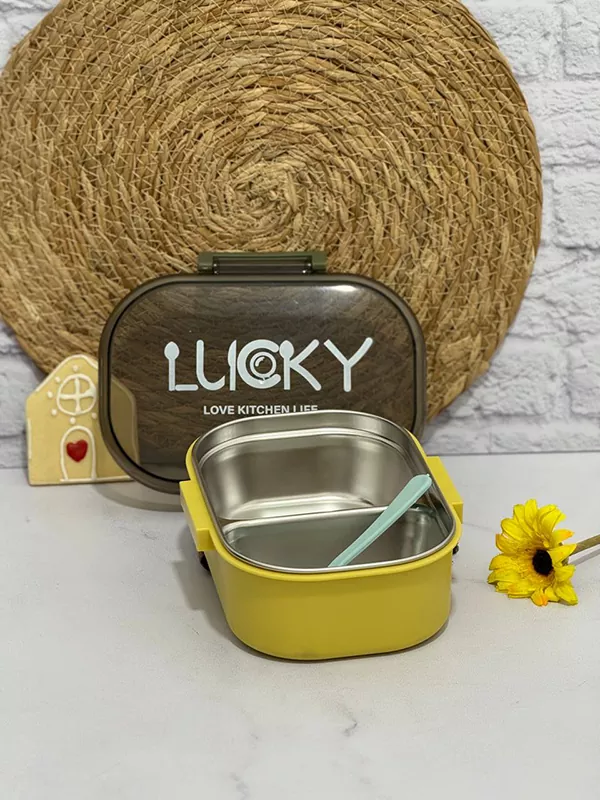 ظرف غذای دو قسمتی قاشق دار lucky