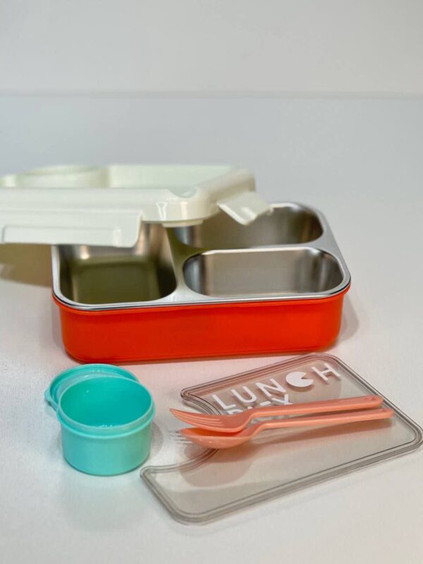 ظرف غذا وکیوم چند قسمتی همراه جا سسی ظرف غذا وکیوم چند قسمتی دارای قاشق چنگال پلاستیک جداره داخلی استیل 304 طول 20 سانت عرض 14 سانت ارتفاع 7 سانت حجم 750+80 میل تولید کشور چین جداره استیل از جداره پلاستیک بیرونی جدا می شود