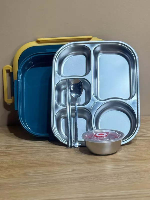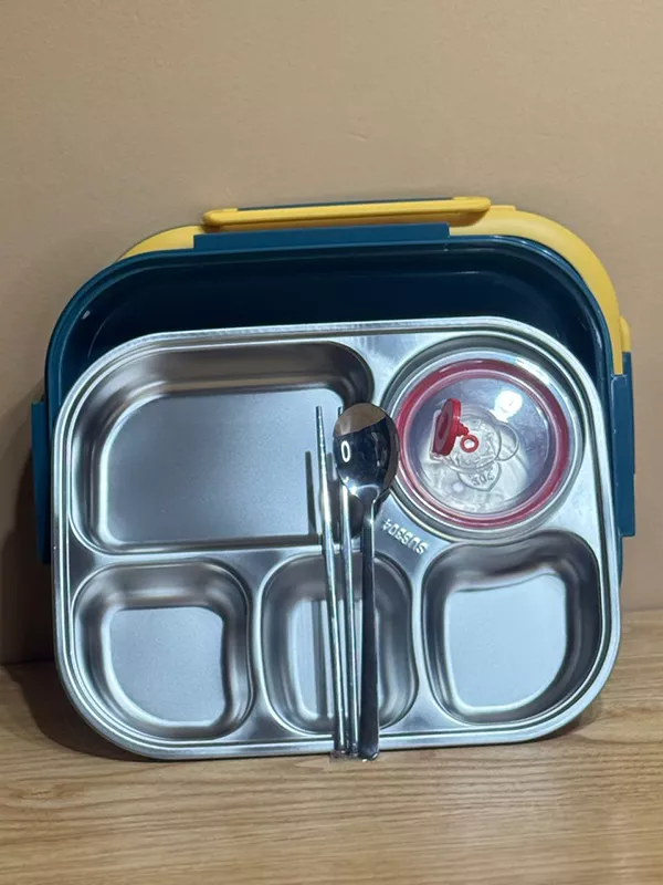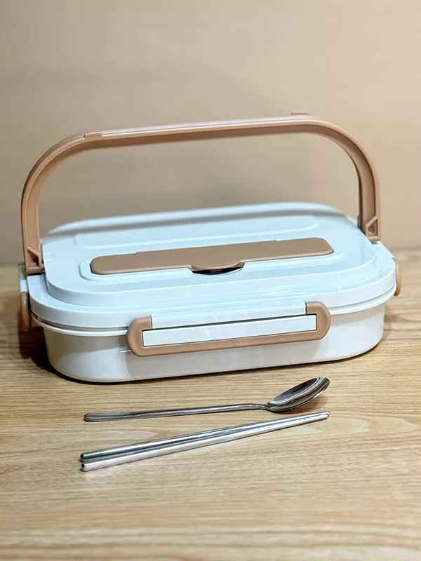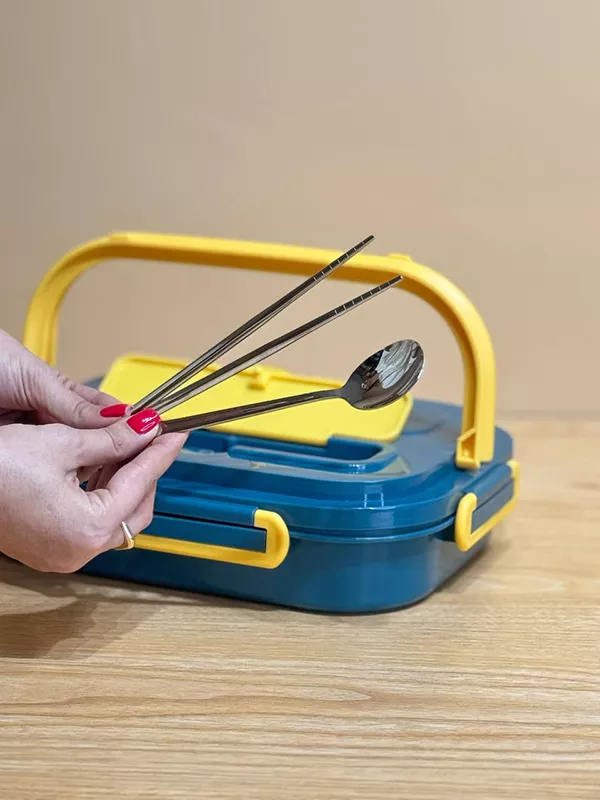 ظرف غذا کارمندی دارای قاشق و چاپستیک استیل