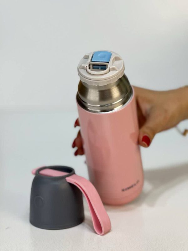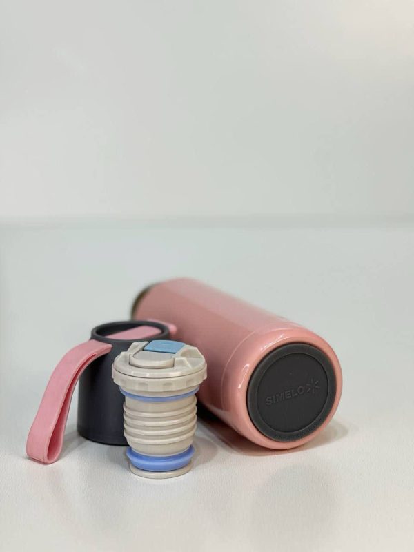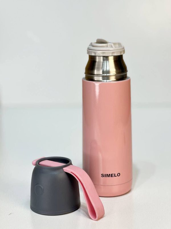 فلاسک استیل 300 میل برند simelo طول 21 سانت قطر دهانه 4/5 سانت درب فلاسکی تک رنگ دارای بند سیلیکونی وارداتی چین
