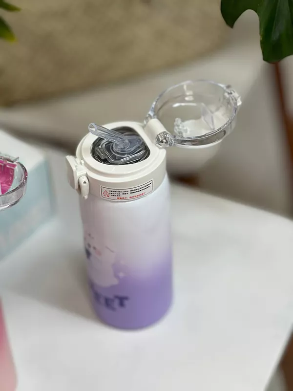 فلاسک دوجداره نی دار 350 میل فلاسک دوجداره بدون نشتی و آبریز جداره داخلی استیل ۳۰۴ در پیچی، قفلی موجود در 3 رنگ وارداتی ( چین) ارتفاع ۱۸ سانت قطر دهانه ۵ سانت قطر کف ۶.۵ سانت دارای بند سیلیکونی دارای سری نی نوشی داراس استپ زیر کار سیلیکونی