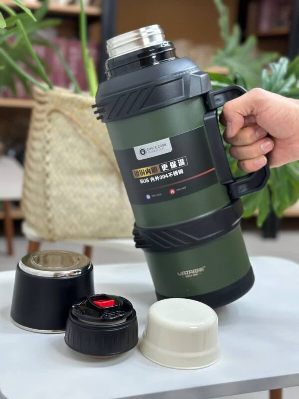 فلاسک کوهنوردی ۳۵۰۰ میل YATAI فلاسک کوهنوردی ۳۵۰۰ میل YATAI دوجداره استیل جداره داخلی استیل ۳۰۴ ارتفاع 40 قطر دهانه 7 قطر کف 14 دارای دو سر لیوانی( یکی پلاستیکی، یکی استیل) دارای دو دسته از بغل دارای درب دکمه ای نگهداری ۲۴ ساعت سرما و گرما نگهداری ۴۸ ساعت تکه های یخ بدون نشتی و آبریز