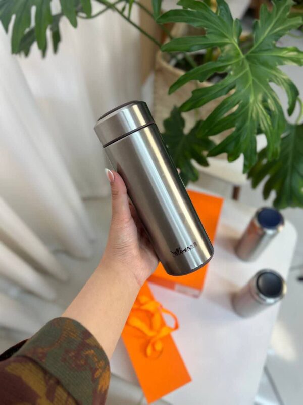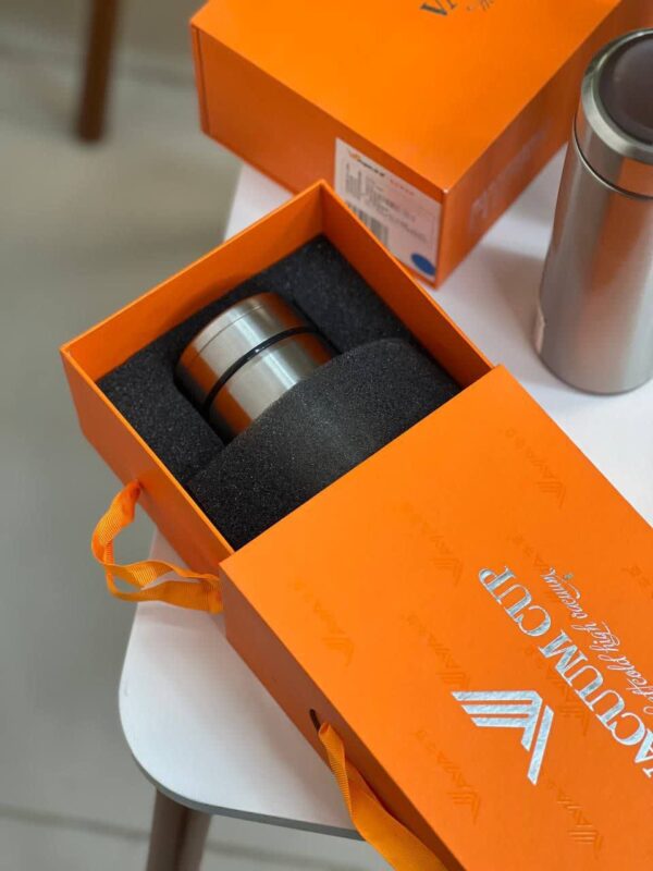 فلاسک استیل جعبه کادویی 330 میل فلاسک دوجداره جداره داخلی استیل درب پیچی دارای تفاله گیر استیل حجم ۳۳۰ میل ارتفاع ۲۰ سانت قطر دهانه ۵.۵ سانت قطر کف ۶.۵ سانت دارای جعبه بدون نشتی و آبریز قابل استفاده در کیف مناسب نوشیدنی های سرد و گرم وارداتی( چین)