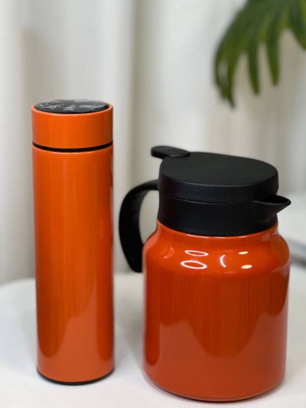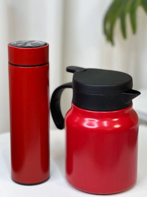 ست کادویی فلاسک دو عددی ست کادویی فلاسک دو عددی پک شامل دو عدد فلاسک می باشد یک عدد فلاسک مسافرتی دماسنج دار خصوصیات: حجم ۵۰۰ ارتفاع ۲۲ قطر دهانه۶.۵ استیل ۳۰۴ دارای استیل تفاله گیر یک عدد فلاسک چای حجم:۱۰۰۰ میل ارتفاع ۱۸ سانت قطر دهانه ۹.۵ قطر کف ۱۲ سانت استیل ۳۱۶ دارای تفاله گیر استیل ۳۱۶