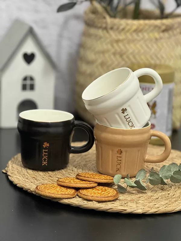 ماگ سرامیکی لب طلای لاکی lucky ماگ سرامیکی لب طلای لاکی lucky سرامیکی ۳ رنگ حجم ۴۰۰ میل ارتفاع۸.۵ قطر دهانه ۹ سانت وارداتی قابل استفاده در ماکرو و ماشین ظرفشویی