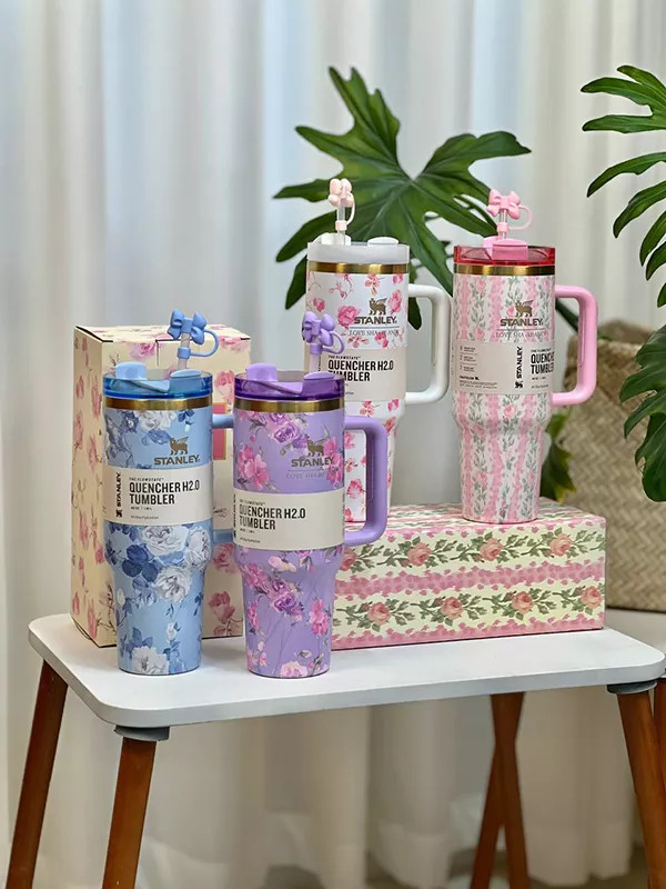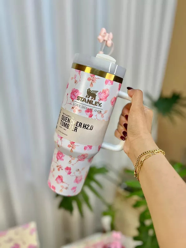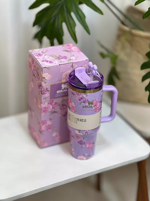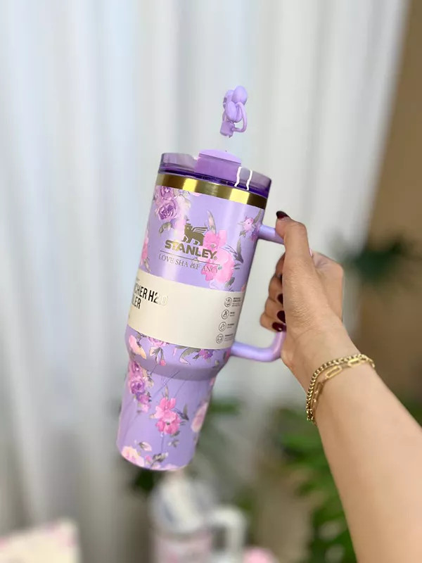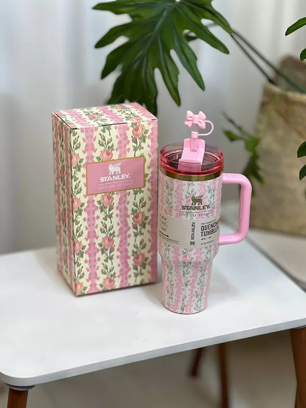 ماگ استنلی دسته دار طرح گل 1180 میل
