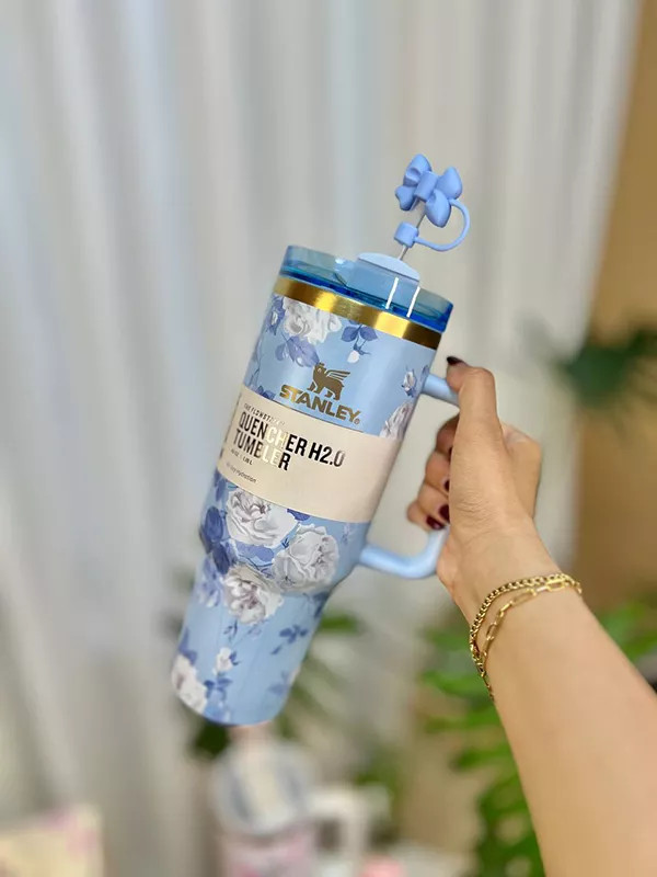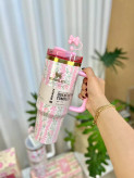 ماگ استنلی نی دار دارای نی نوش و سر نی پاپیونی سیلیکونی